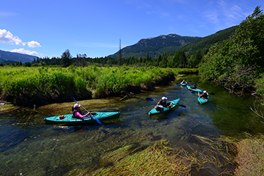 Trips include hiking through old growth forests, experiencing the Whistler alpine, exploring the valley trail network by bike or paddling down the River of Golden Dreams or on one of the Valleys many lakes.